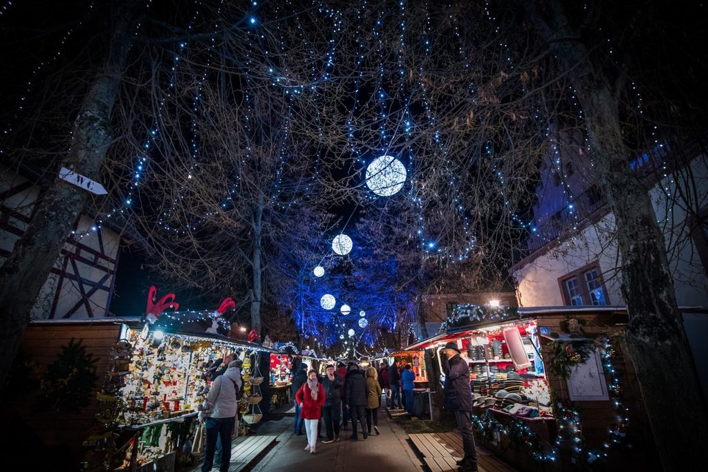 Riquewihr, qui a su conjuguer depuis des siècles la qualité de son architecture à celle de son patrimoine étonnamment préservé, est une étape incontournable de la découverte de l’Alsace. Au moment de Noël, la ville ruisselle de lumière et propose son marché de Noël traditionnel dans un décor féérique alliant l’esprit de Noël à tout ce qui fait le charme de l’Alsace : les rues se parent de décors scintillants, les façades et les monuments s‘illuminent, les échoppes du marché de Noël s’animent …. cette joyeuse effervescence rappelle le monde de l’enfance chargé de souvenirs et d’émotion …