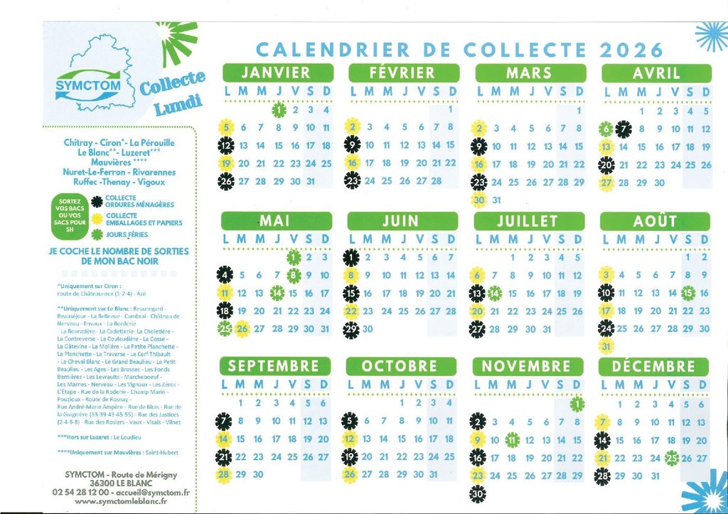 CALENDRIER DE COLLECTE 2026 SYMCTOM