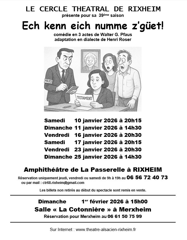 Le Cercle Théâtral de Rixheim présente pour sa 39ème saison "Ech kenn eich numme z'güet !"