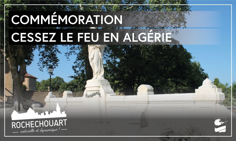 Anne Marie ALMOSTER RODRIGUES, Maire de Rochechouart, et le Conseil Municipal vous invitent à la cérémonie commémorative du 64ème anniversaire du Cessez le Feu en Algérie.