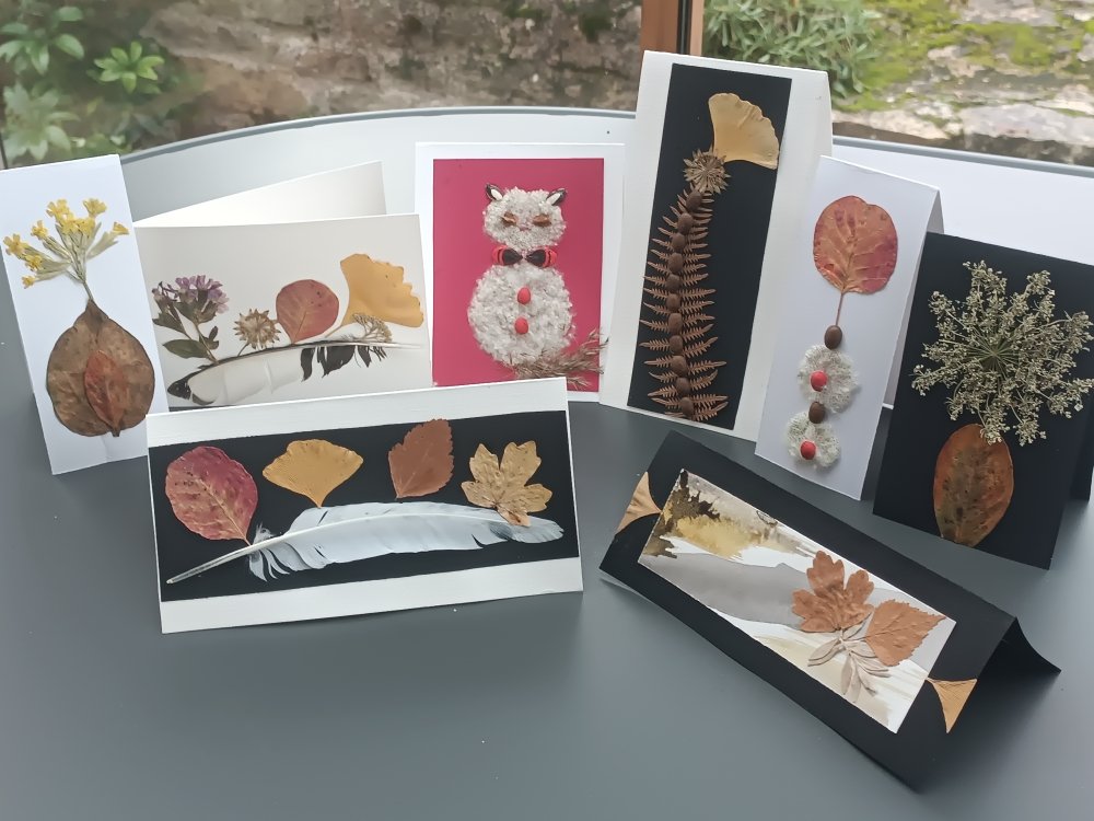 Pour un Noël d'émerveillement offrant simplement à nos yeux éblouis quelques doux souvenirs de nos printemps renaissants, de nos étés fleuris ou de nos automnes flamboyants,  je me réjouis de présenter les cartes végétales réalisées ensemble lors de l'atelier du 15 Novembre 2025, et quelques unes de mes créations personnelles.