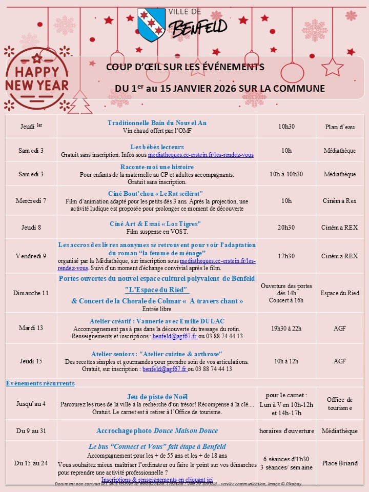 📅 Coup d'œil sur les événements du 1er au 15 janvier 2026 📣