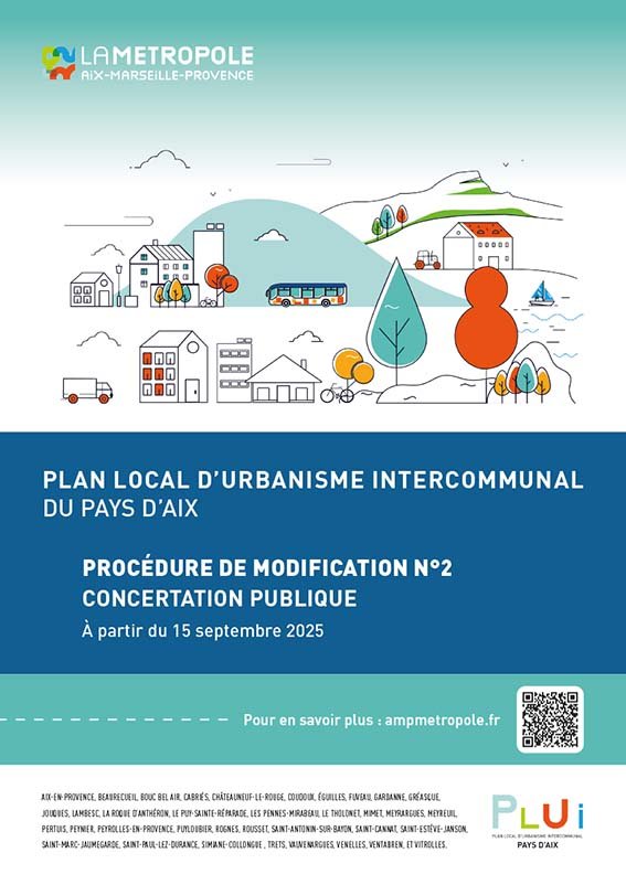La Métropole Aix-Marseille-Provence organise une concertation relative à la modification n°2 du Plan Local d’Urbanisme intercommunal (PLUi) du Pays d'Aix adopté le 5 décembre 2024.