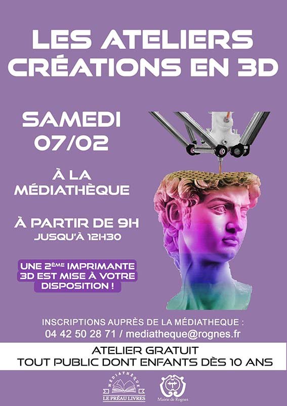 À partir de 9h, la médiathèque vous propose son atelier imprimante 3D !