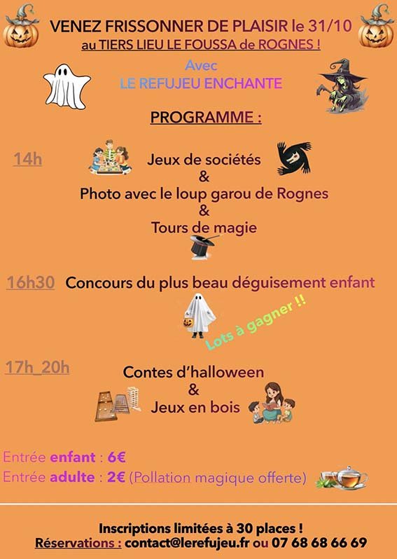 Inscriptions limitées / Réservation contact@lerefujeu.fr ou 07 68 68 66 69
