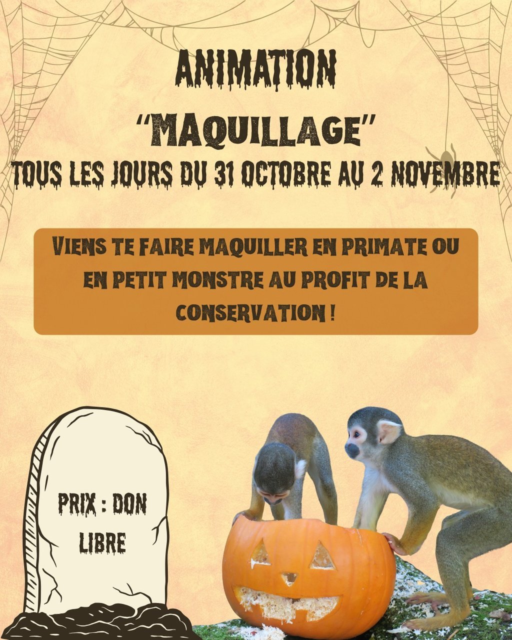 Viens te faire maquiller en primate ou en petit monstre au profit de la conservation ! Don libre.
