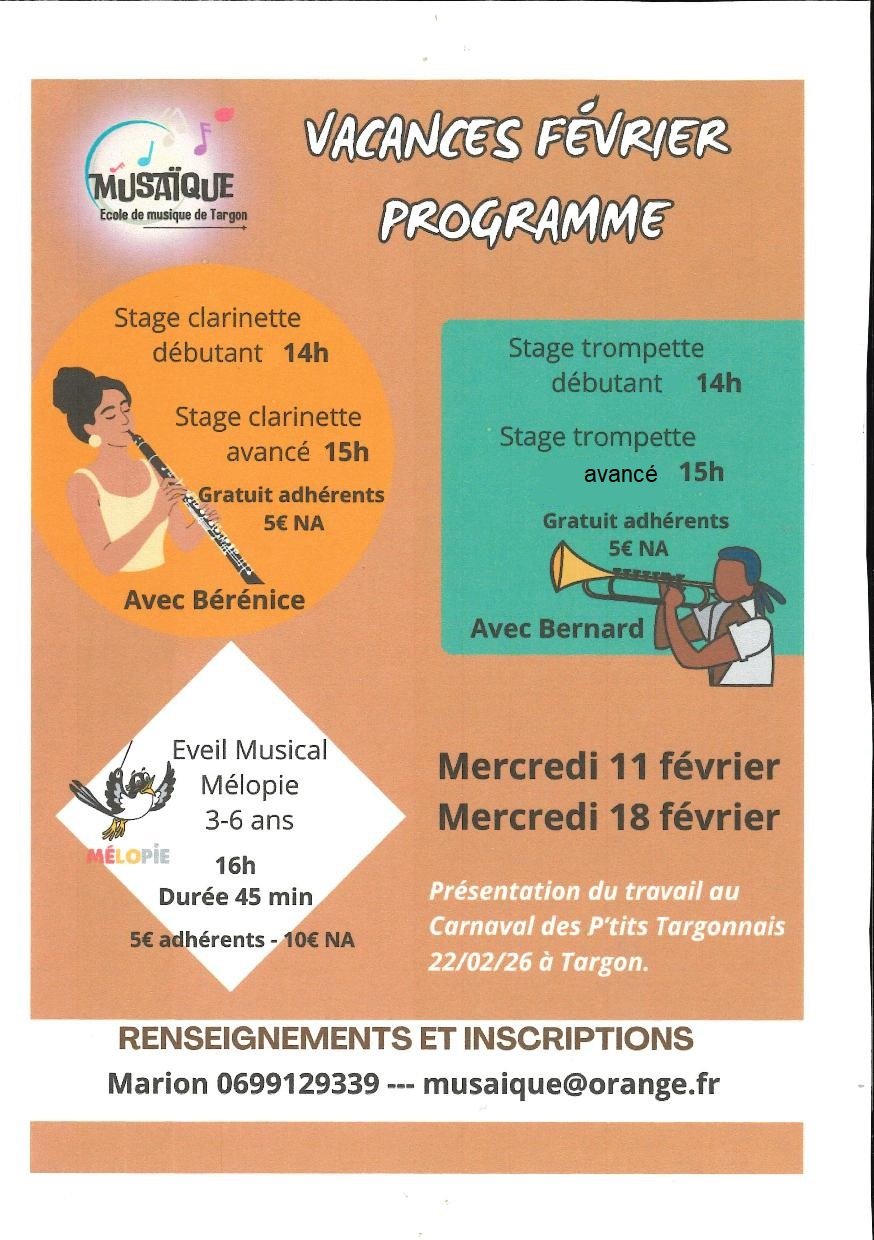 N'hésitez pas à vous inscrire pour les stages durant les vacances de février 🎺 🎵