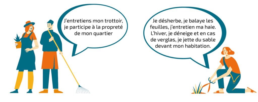 Au fil des saisons, vous devez nettoyer, désherber, déneiger, enlever les feuilles sur le trottoir, devant votre domicile.