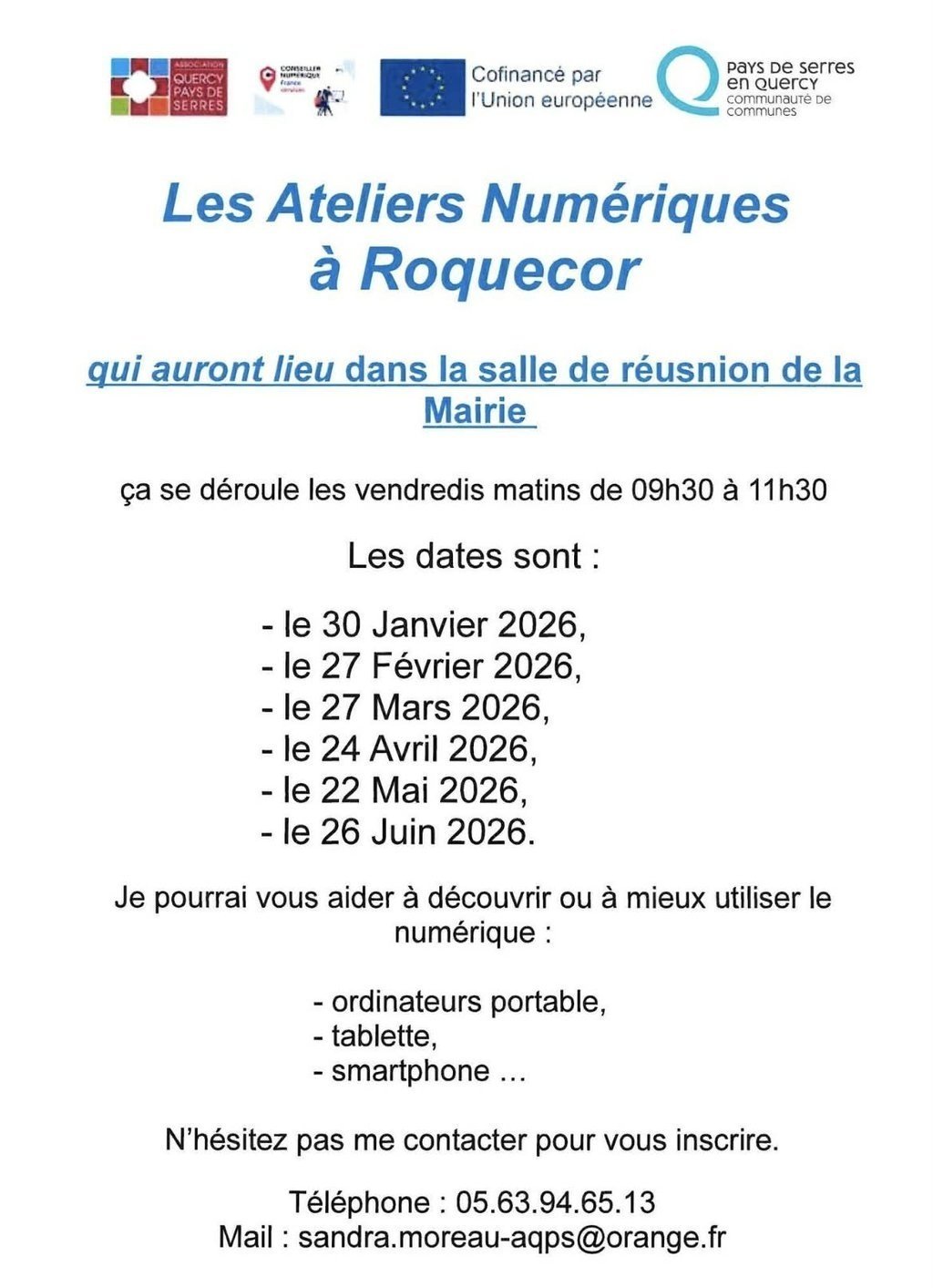 Inscription obligatoire auprès de Sandra Moreau 05 63 94 65 13 ou