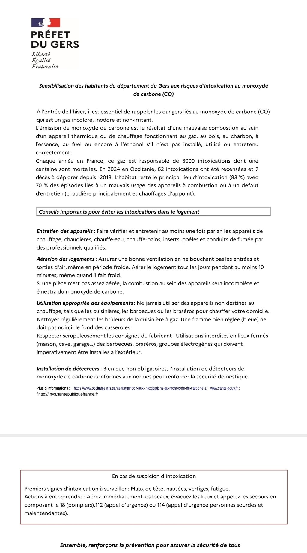 SENSIBILISATION RISQUES D'INTOXICATION AU MONOXYDE DE CARBONE (CO)