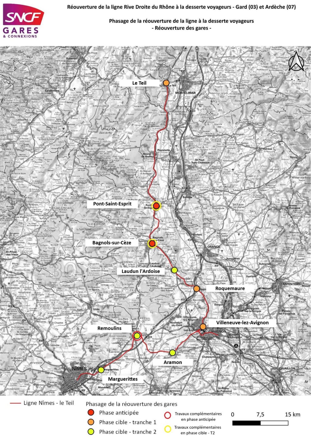 L’aménagement de la gare de Roquemaure et de son Pôle d’Echange Multimodal s’inscrit dans la tranche 1 de ce projet.