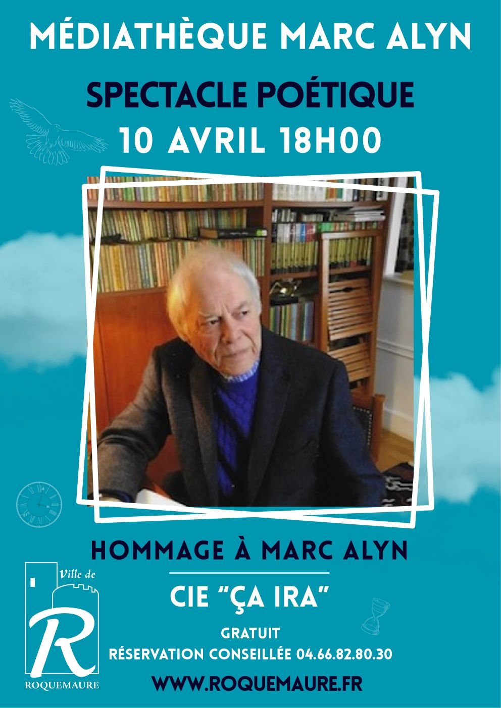 Le groupe « ça ira » donnera un récital le vendredi 10 avril 2026 à la Médiathèque de Roquemaure. Ce spectacle rendra hommage au poète Marc Alyn (qui nous a quitté en 2025) . « Marc Alyn entre en poésie par un coup d’éclat, recevant dès l’âge de 20 ans le prix Max-Jacob. Par la suite, il a reçu d’autres prestigieuses distinctions dont le Prix Goncourt de la poésie en 2007 pour l’ensemble de son œuvre. ». La Médiathèque de Roquemaure porte son nom.