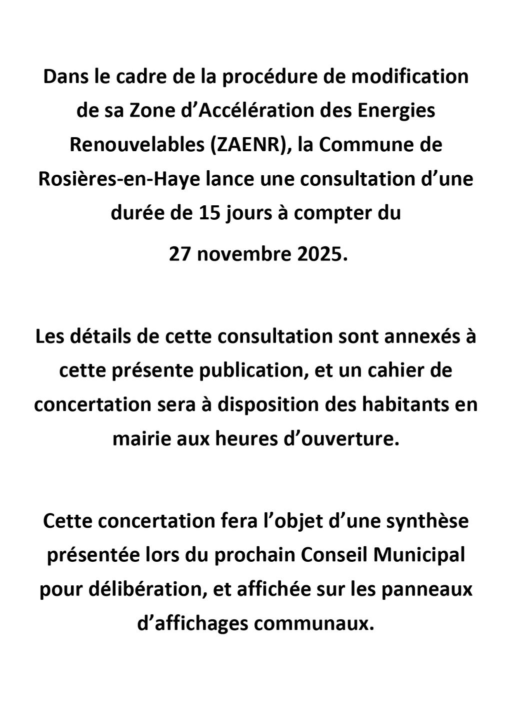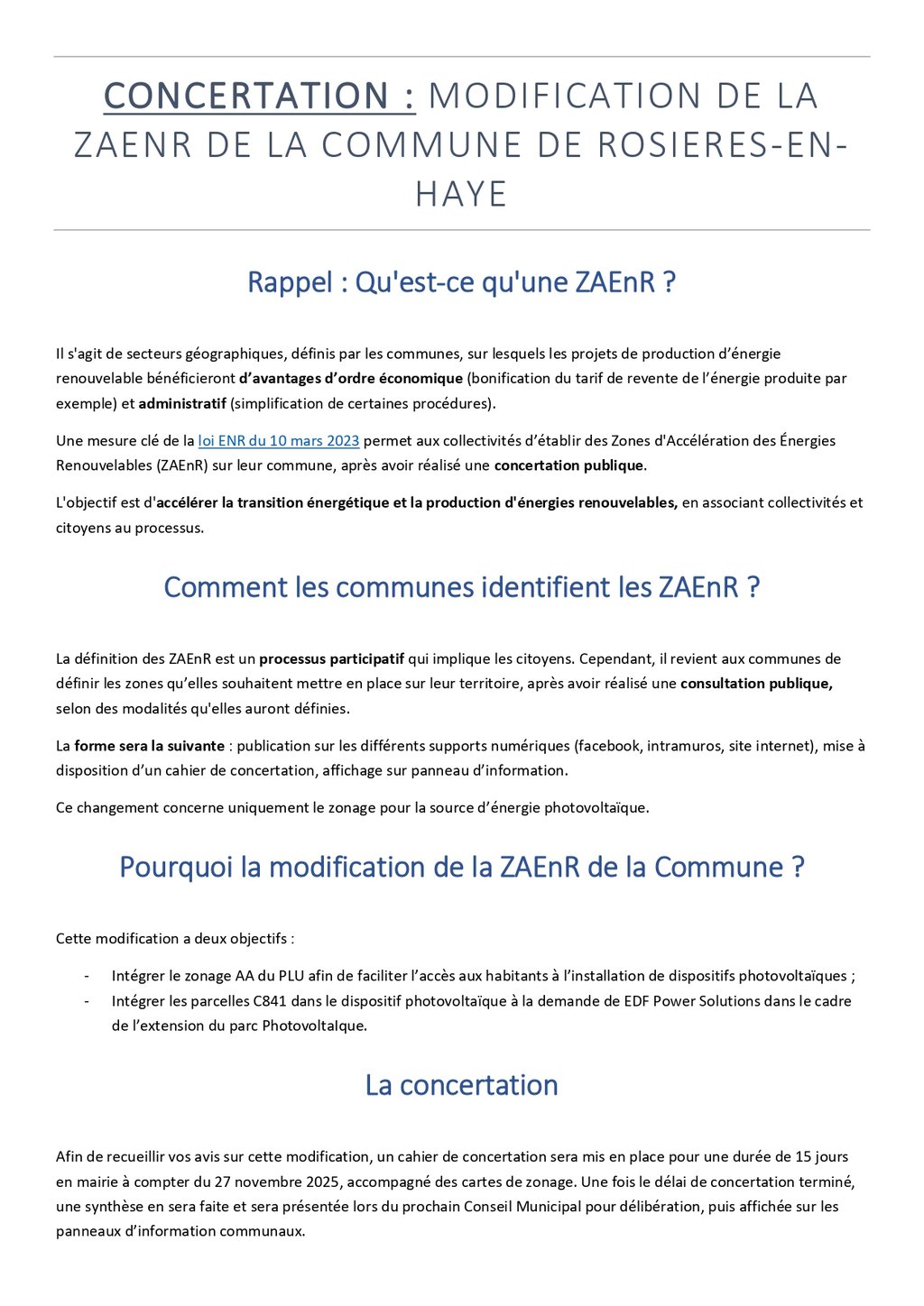 CONCERTATION : MODIFICATION DE LA ZAENR DE LA COMMUNE DE ROSIERES-EN-HAYE