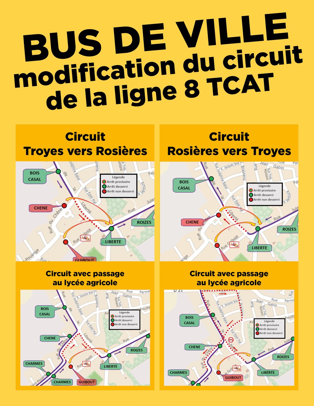 Les lignes de la TCAT passant par la rue Guibout seront déviées par la rue du Chêne (voir visuel ci-contre).