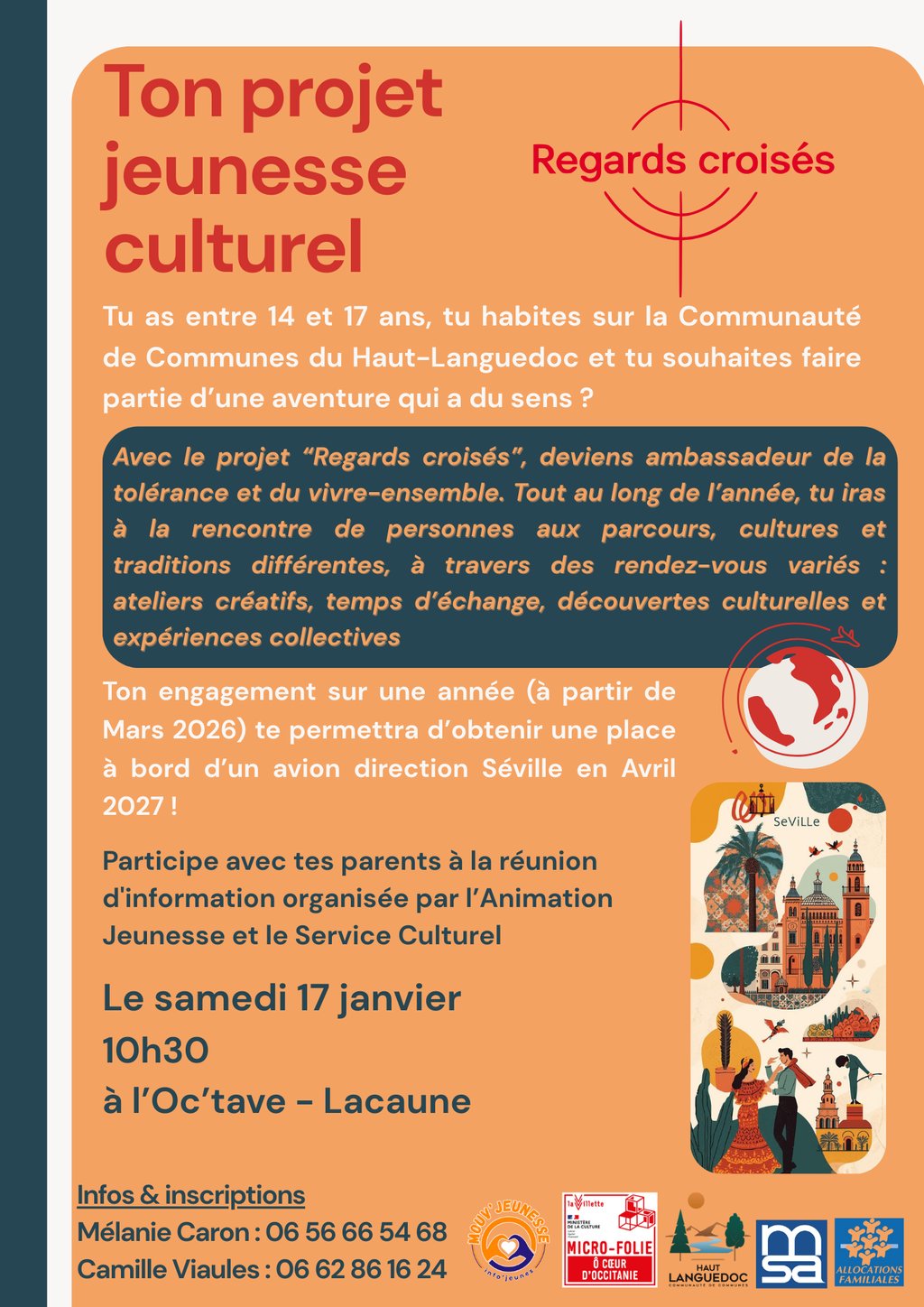 Le projet ℝ𝕖𝕘𝕒𝕣𝕕𝕤 𝕔𝕣𝕠𝕚𝕤é𝕤 s’adresse aux jeunes de 14 à 17 ans vivant sur la Communauté de Communes du Haut-Languedoc et propose, tout au long d’une année (mars 2026 à avril 2027), un parcours d’éducation à la citoyenneté et à l’ouverture culturelle.