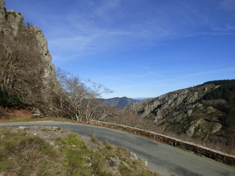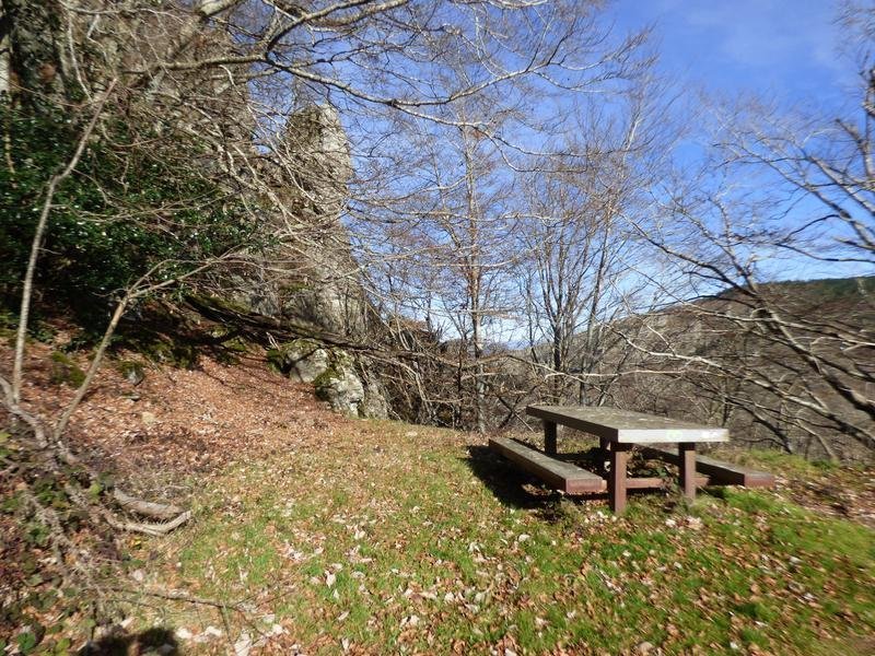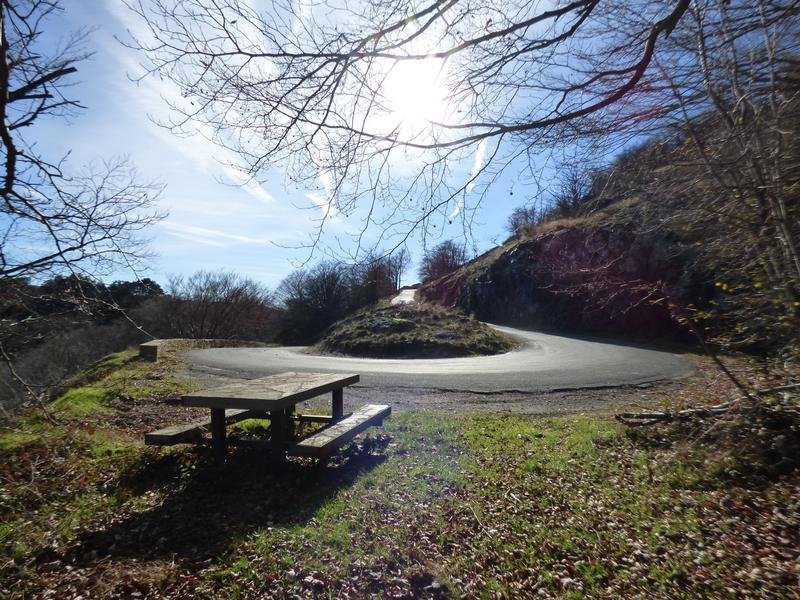 Petite aire en bord de route à proximité d'une petite cascade et d'un refuge. Beau point de vue sur le massif du Caroux-Espinouse.