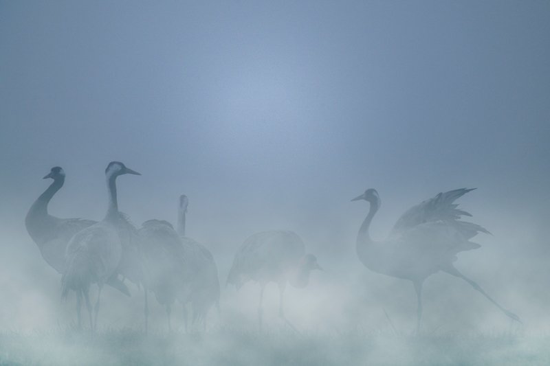 Votre guide expert vous accompagnera le matin pour rechercher les Grues cendrées s'alimentant dans les zones de gagnage. Les sorties de fin d'après-midi seront consacrées au retour des grues au dortoir.