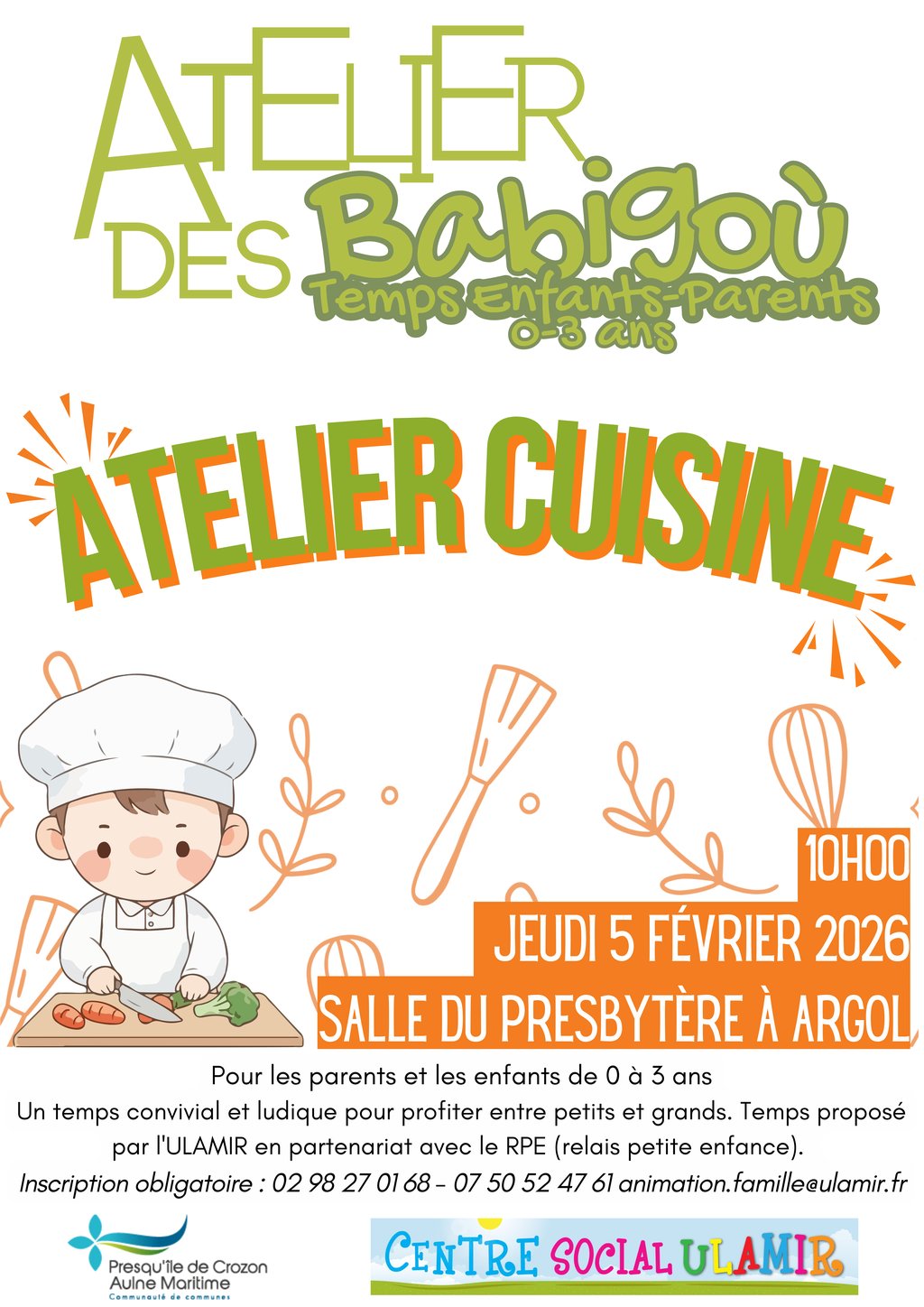 Inscription obligatoire : 02 98 27 01 68 - 07 50 52 47 61 animation.famille@ulamir.fr