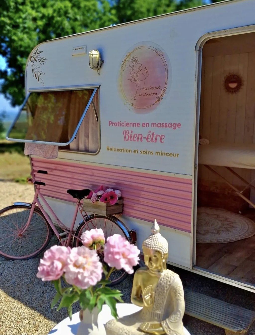 Prestations réalisées dans une caravane cocooning dédiée à la détente.