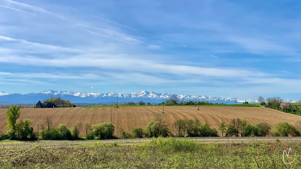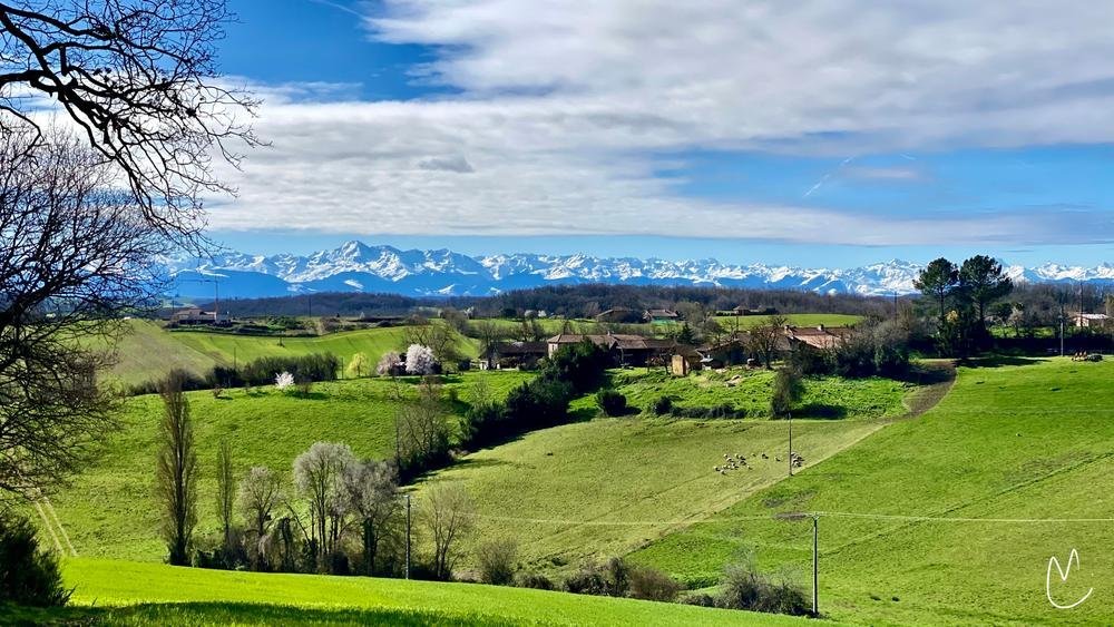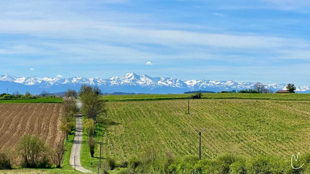 Ici, Les collines verdoyantes de l’Astarac s’étendent à perte de vue, ponctuées de vallons et de champs cultivés, tandis qu’à l’horizon se dessine la majestueuse chaîne des Pyrénées, toile de fond grandiose qui sublime chaque halte.