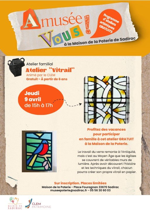AMUSÉE VOUS ! ATELIER FAMILIAL « VITRAIL » JEUDI 9 AVRIL À 15H