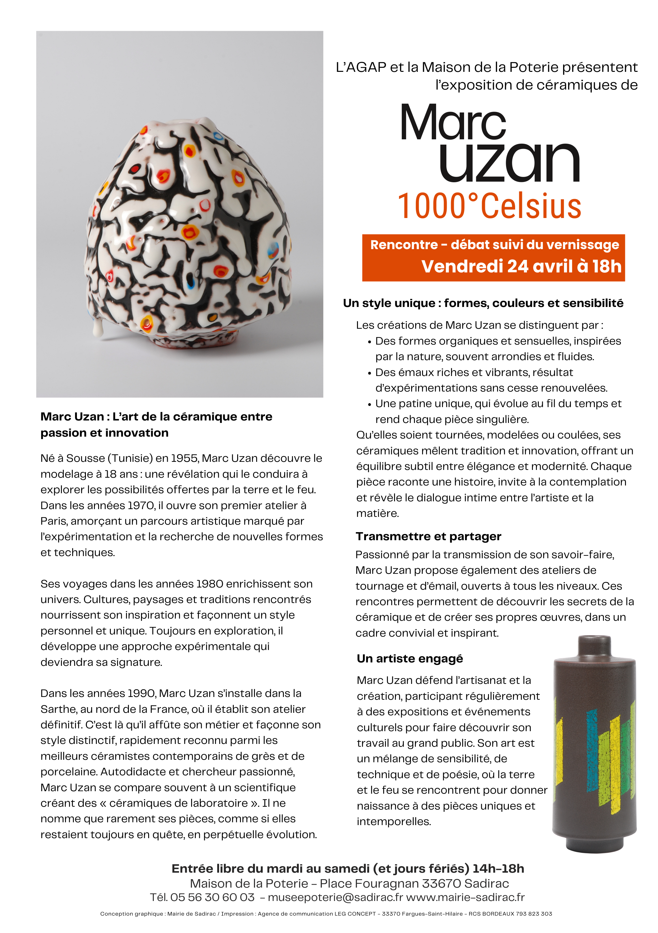 Marc Uzan sera également invité d’honneur du Festival Céramique en fête, les 13 et 14 juin 2026.