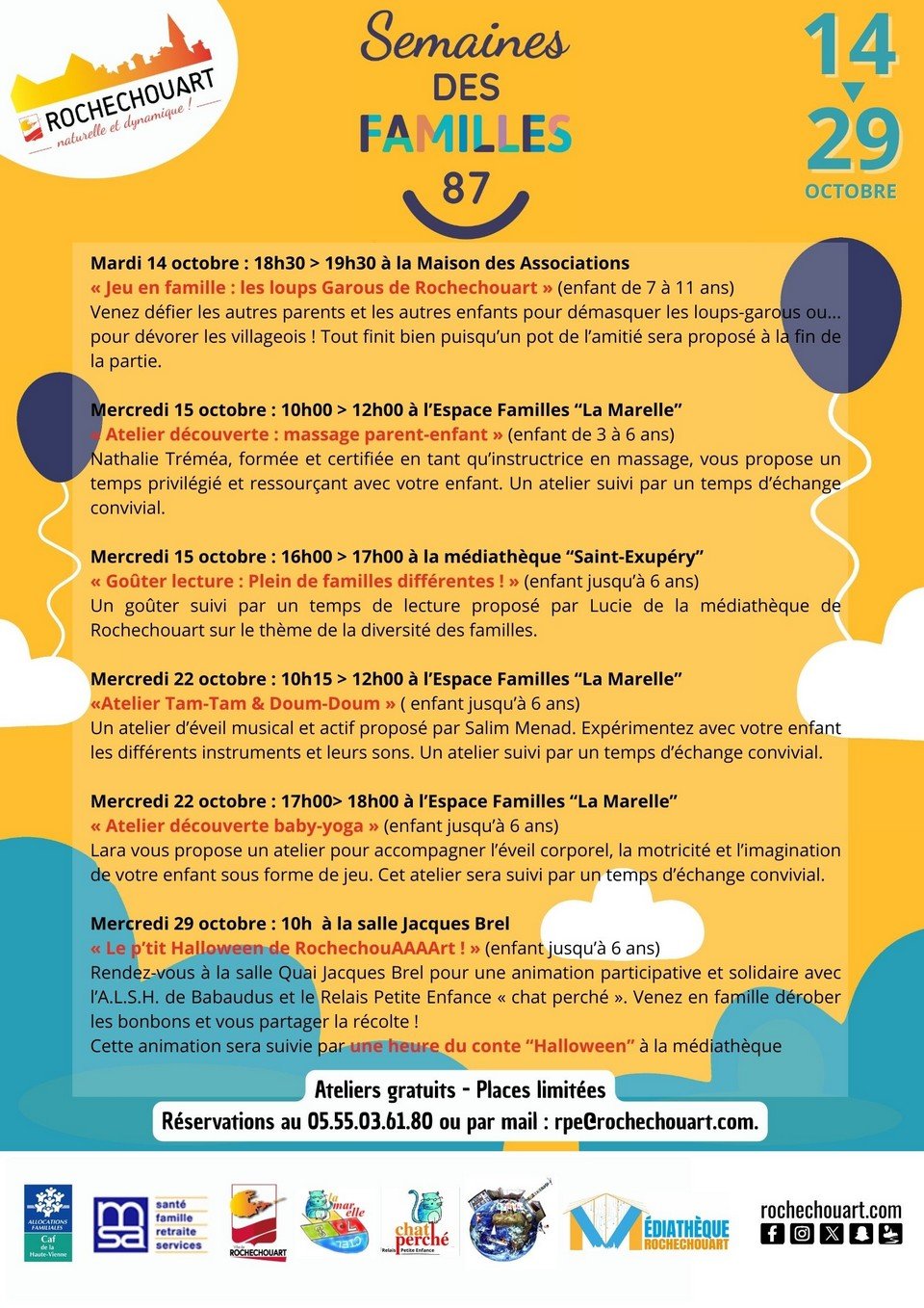 L'espace familles vous proposent des ateliers et des jeux à l'occasion des semaines des familles.
