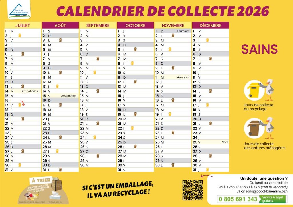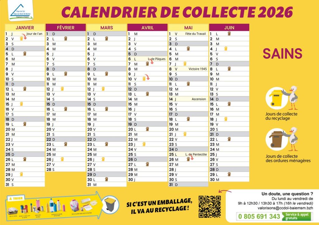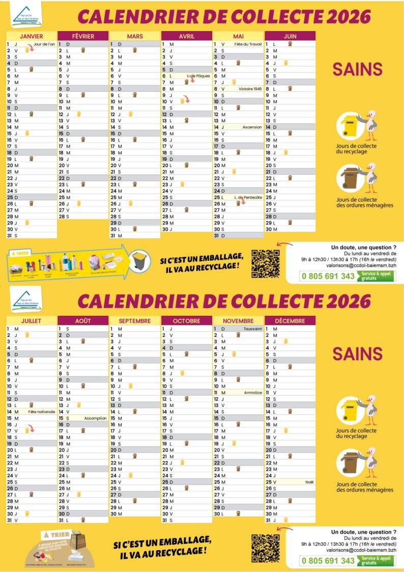 CALENDRIER 2026 COLLECTES DES DÉCHETS À SAINS