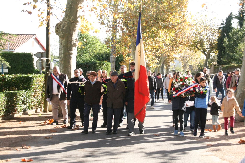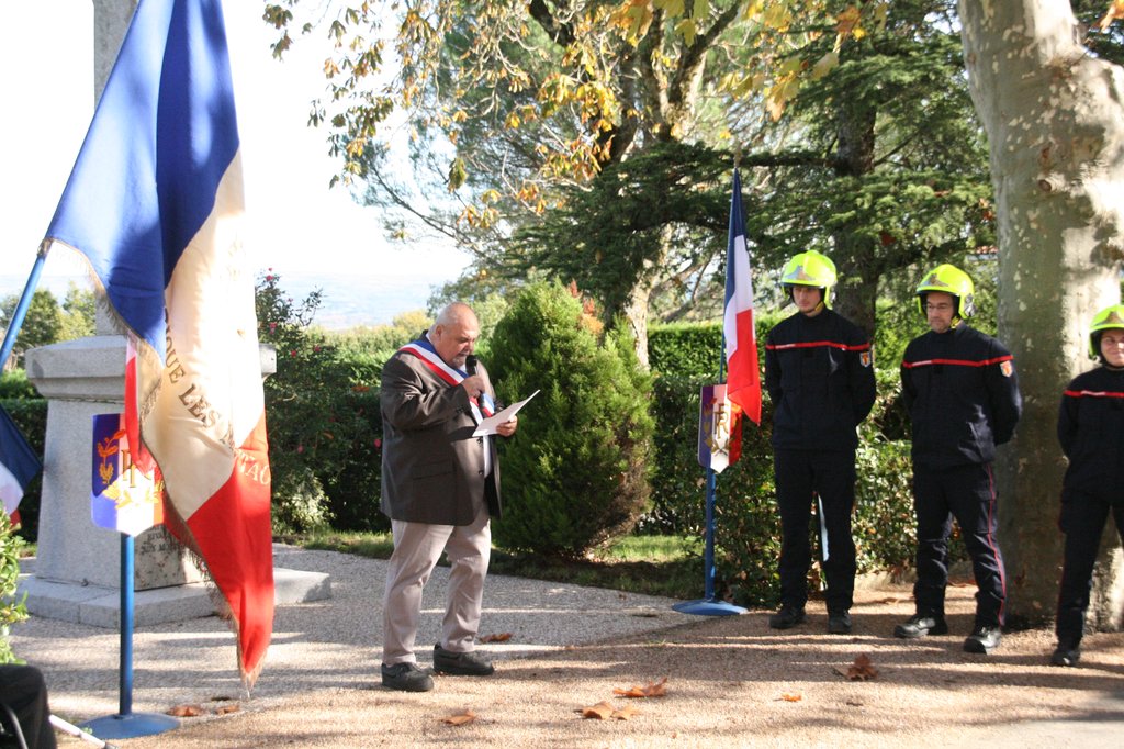 Un détachement de pompiers de Labruguière était présent, et c'est devant une assistance nombreuse que notre maire a lu son discours. Les enfants ont ensuite pris le relais pour nous lire la lettre de l'UFAC puis quelques vers d'un poème de circonstance.