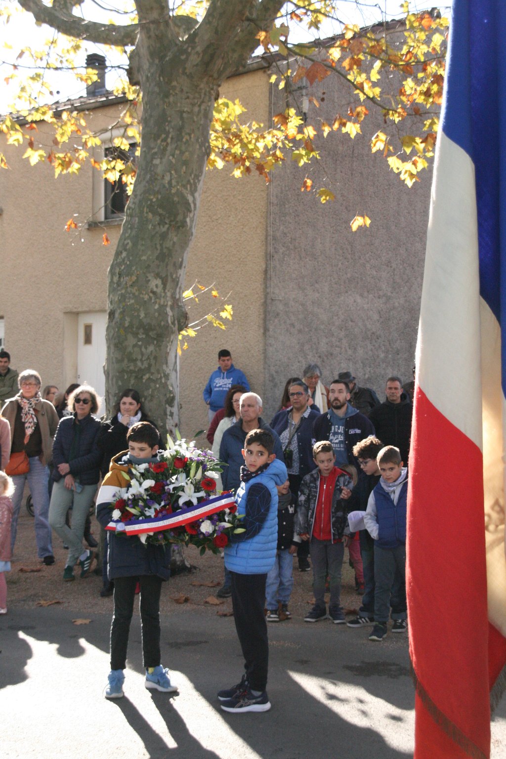 Dépôt de gerbe, minute de silence et sonnerie aux morts plus tard, les enfants de notre école ont clôturé la cérémonie de belle manière en chantant la Marseillaise à capella.