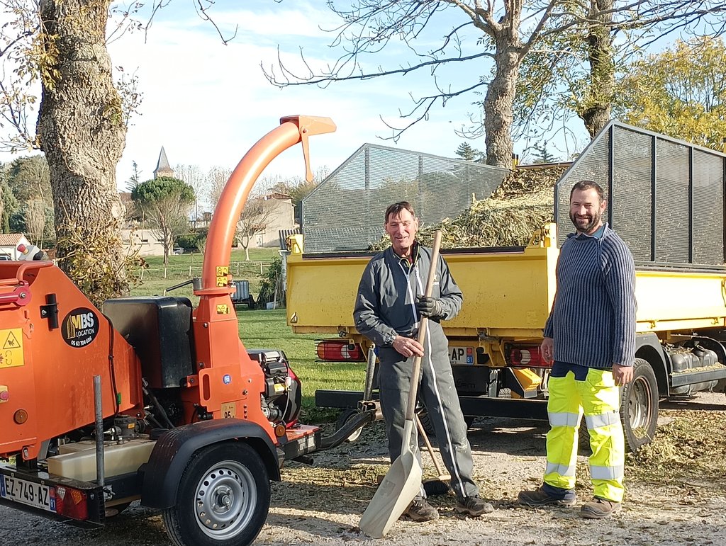 Votre Communauté de Communes avait organisé une session de broyage de déchets verts et c'est entre 2 et 3 tonnes de branches et feuilles qui ont été transformées en copeaux en trois heures !