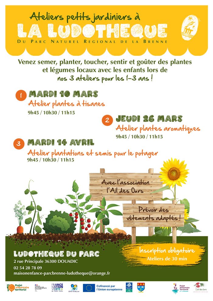 Venez semer, planter, toucher, sentir et goûter des plantes et légumes locaux avec les enfants lors de 3 ateliers " Petits jardiniers " organisés par la Ludothèque dans le cadre du Projet alimentaire territorial de la Brenne.