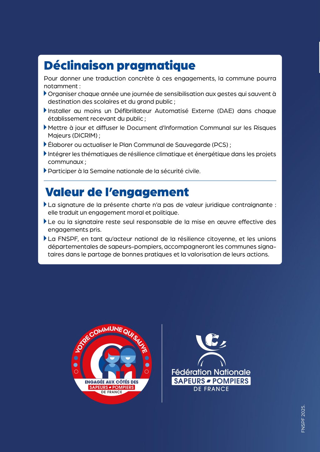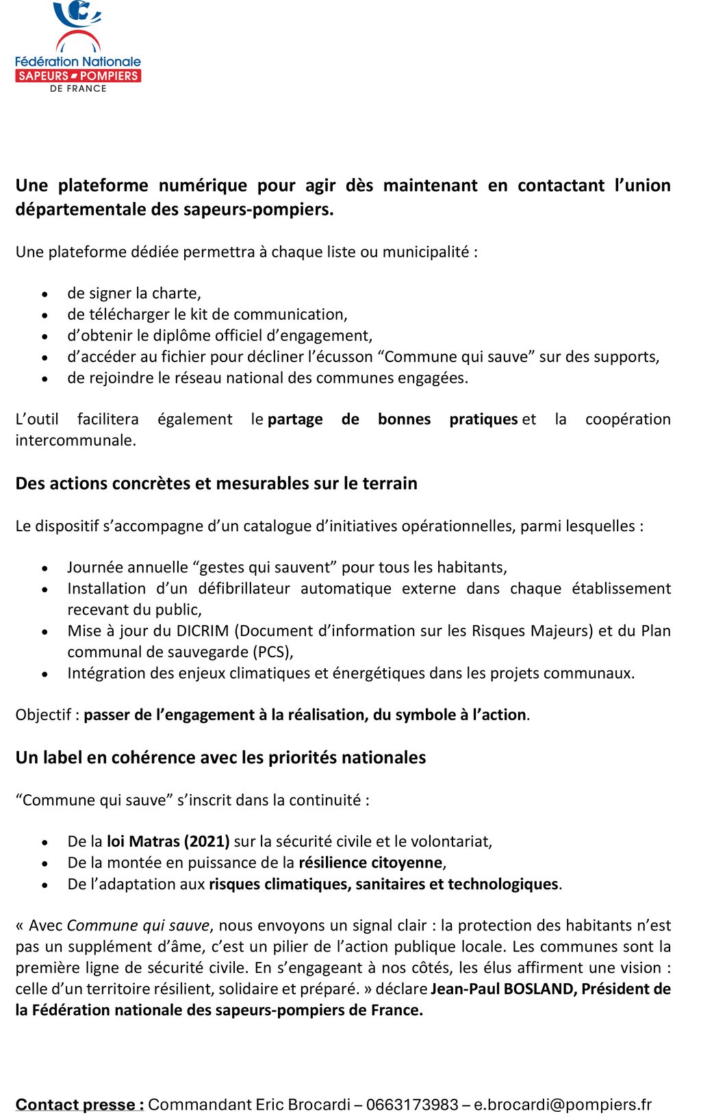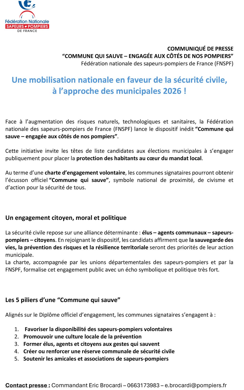 👉Cette initiative de la Fédération Nationale des sapeurs-pompiers de France a pour objet de mobiliser les candidates et candidats aux prochaines élections municipales autour des enjeux de la protection des populations, de la prévention et de la résilience territoriale.
