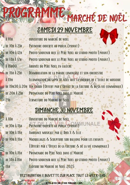 Le Samedi 29 et le Dimanche 30 Novembre, notre village se pare de lumières et d’enchantement pour le Marché de Noël de Saint-Andiol où petits et grands pourront vivre la féérie de Noël sous les lumières, la musique et le sourire du Père Noël.