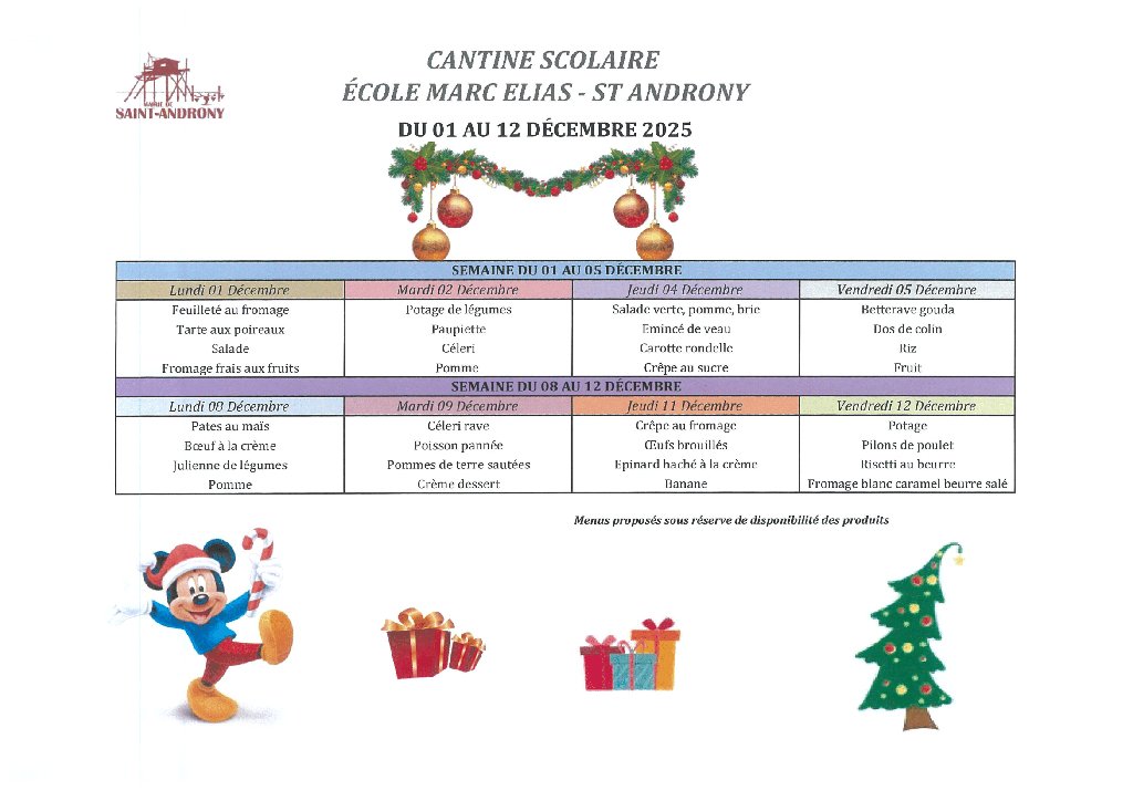 ST-ANDRONY - MENU DU RESTAURANT SCOLAIRE DU 01 AU 12 DECEMBRE 2025