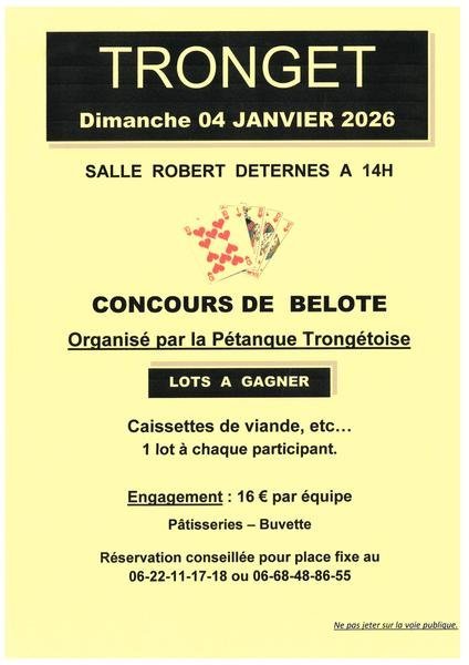 Concours de Belote organisé par la Pétanque Trongétoise.