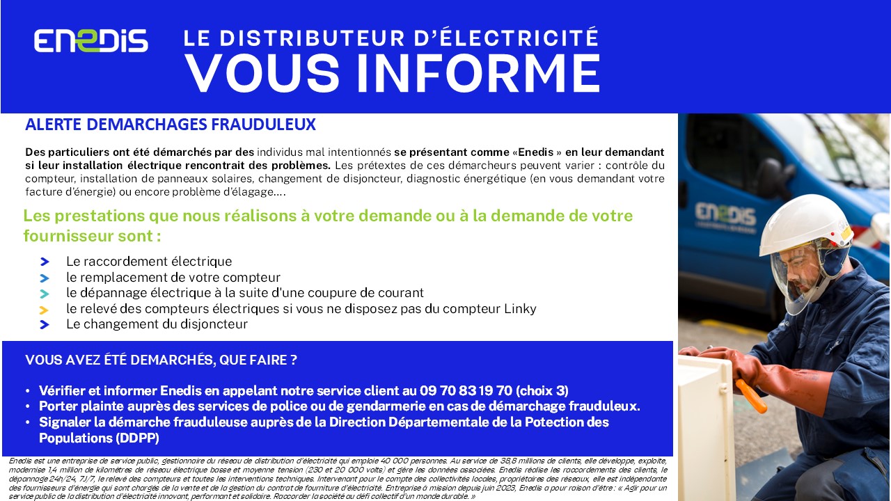 ENEDIS - ALERTE AUX DÉMARCHAGES FRAUDULEUX