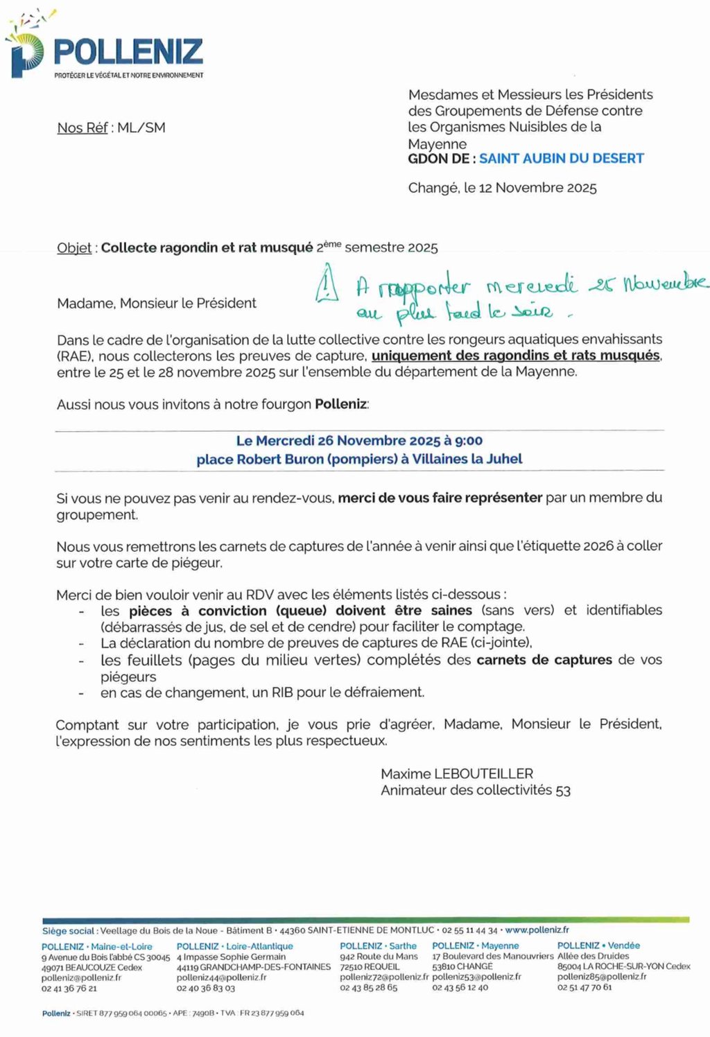 COLLECTE RAGONDIN ET RAT MUSQUÉ 2ÈME SEMESTRE 2025