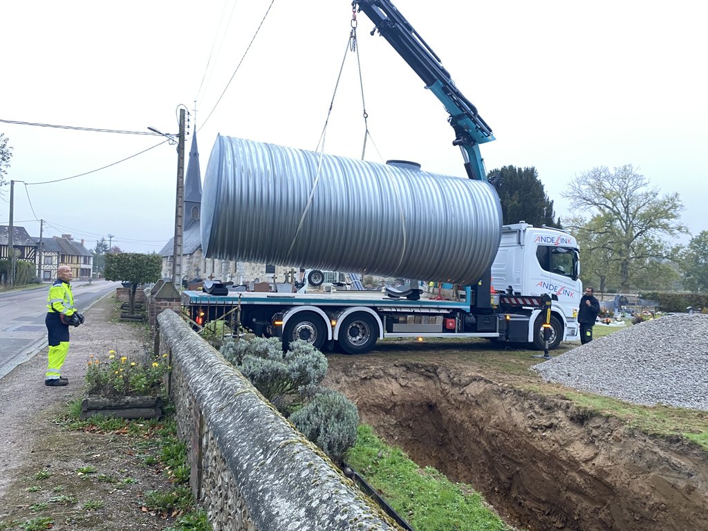 Deux citernes de 30 m3 ont été enterrées chez M DUBUS, grand chemin perré dans le nouveau cimetière, par l'entreprise CHESNOT de Montreuil l Argille.