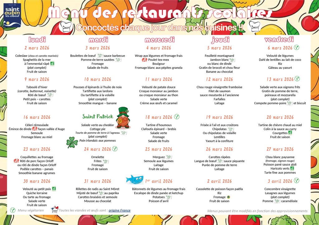 🍽️ MENUS DE MARS 🧃