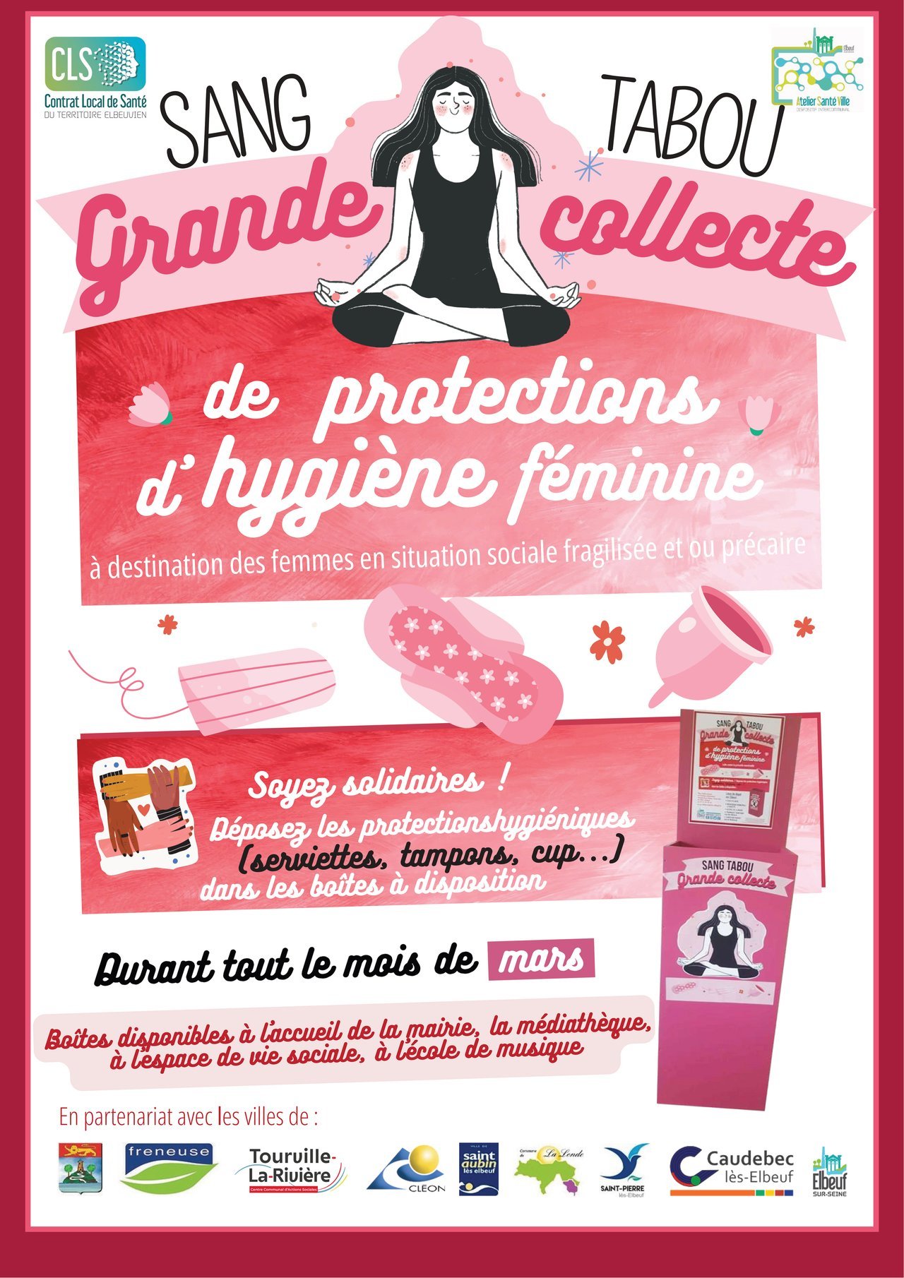 đĄ Jusqu'au 31 mars, dĂ©posez vos protections dâhygiĂšne fĂ©minine dans les points de collecte de la mairie, de la mĂ©diathĂšque, du Trait dâunion et de lâEMDAE.