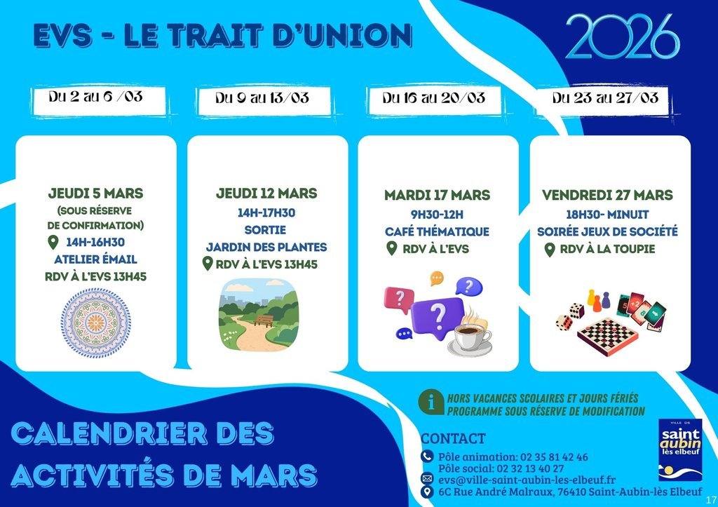 đ” Jusqu'au 31 mars, ateliers, sorties et animations vous attendent Ă lâEspace de Vie Sociale.