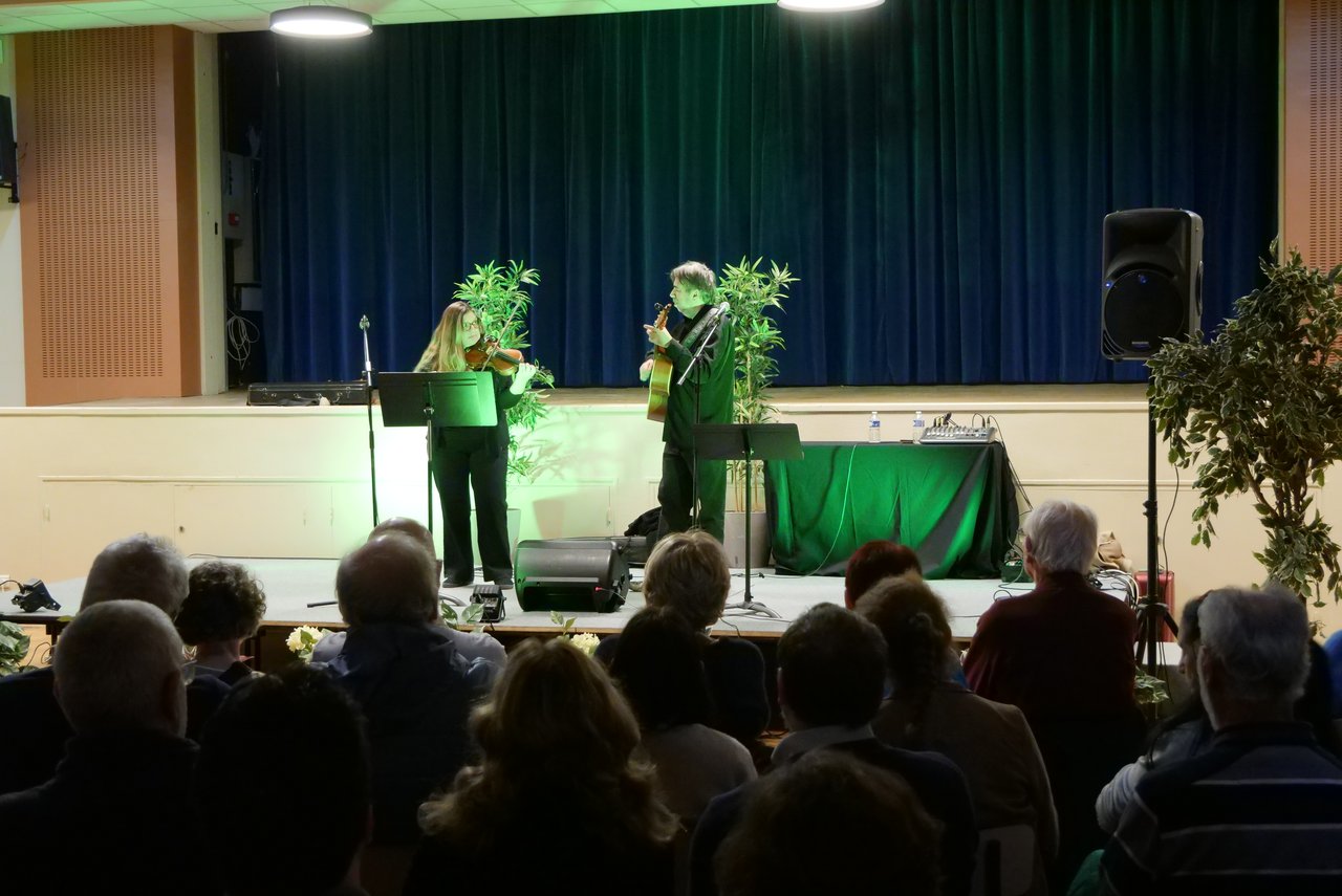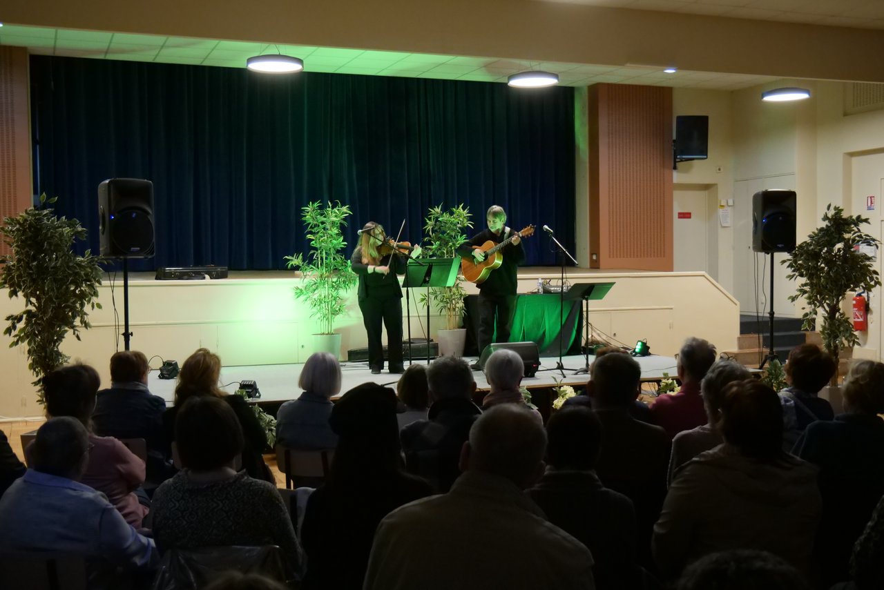 Le vendredi 6 mars, la salle des fĂȘtes a rĂ©sonnĂ© avec la musique traditionnelle du duo Cordes dâIrlande. Dans une ambiance cosy et intimiste, le public sâest laissĂ© emporter par la virtuositĂ© du violon, la douceur de la guitare et la poĂ©sie des airs irlandais. đźđȘ