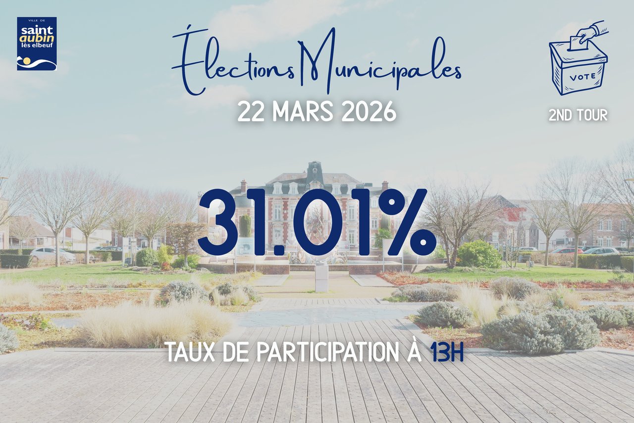 Voici le taux de participation relevé dans les 7 bureaux de vote de Saint Aubin lès Elbeuf, à 13h :