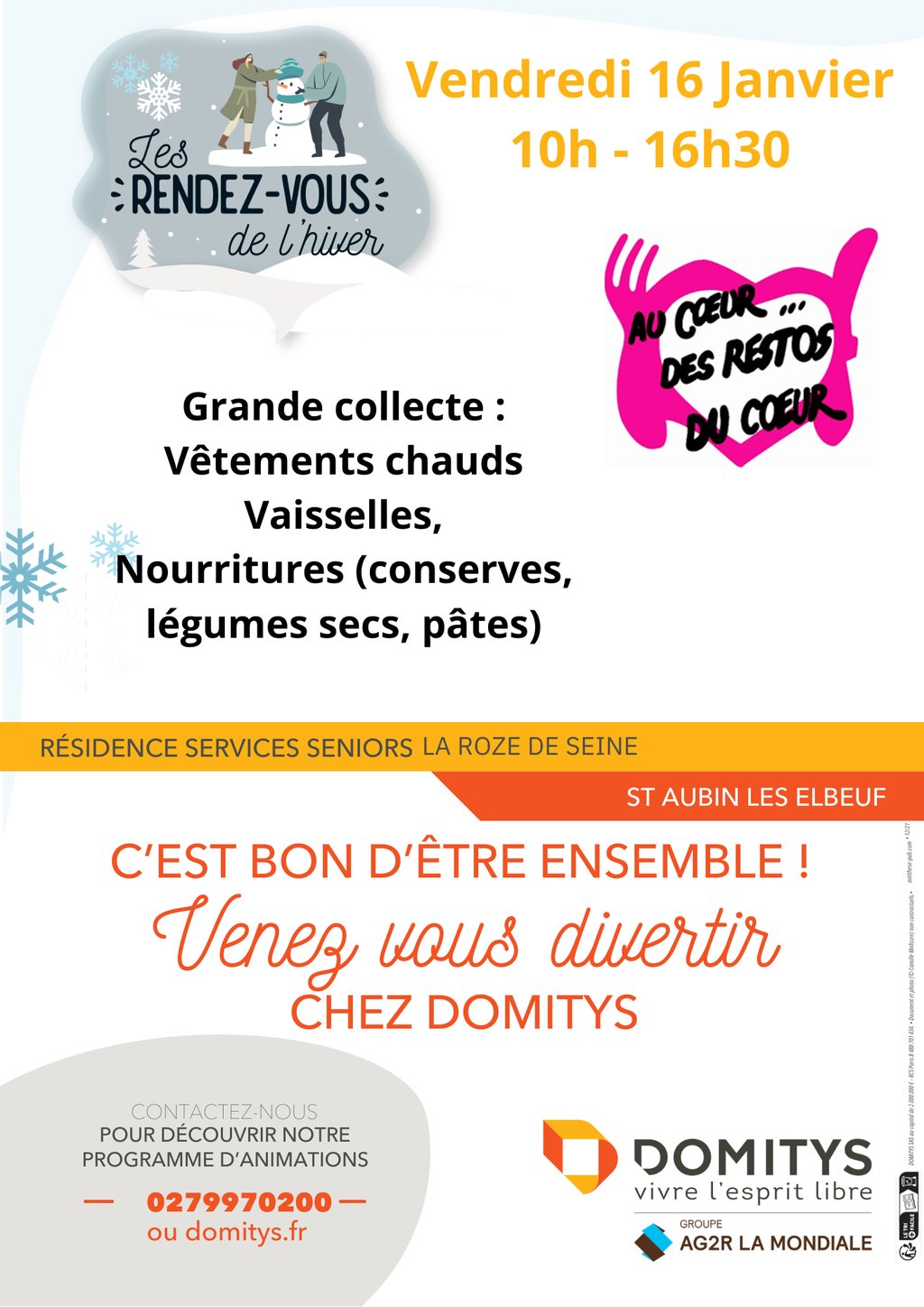 Collecte de vêtements chauds, vaisselles, alimentaire (conserves, légumes secs, pâtes) au profit des Restos du Coeur