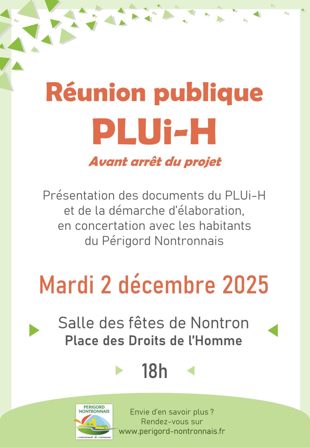 Dans le cadre de l’élaboration du PLUi-H de la Communauté de Communes du Périgord Nontronnais, vous êtes convié·es à une réunion publique avant l’arrêt du projet, visant à :