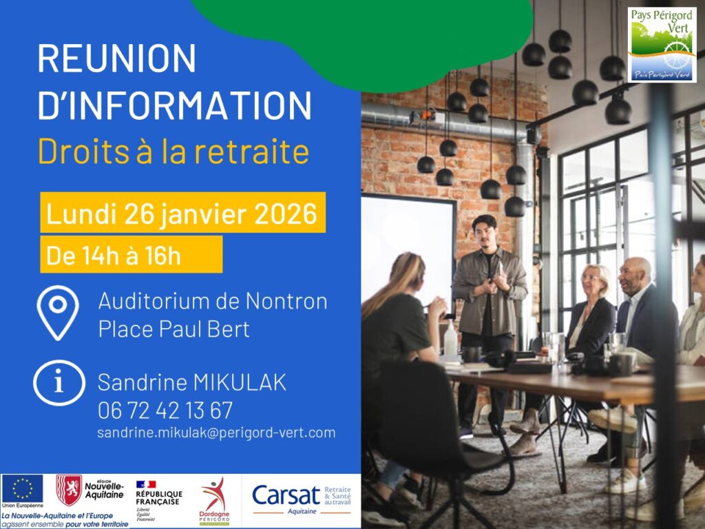 RÉUNION D’INFORMATION GRATUITE SUR LES DROITS À LA RETRAITE.