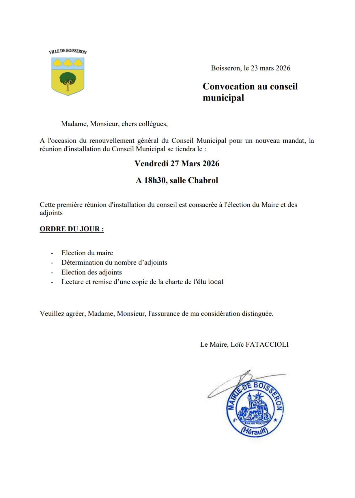 Ce premier conseil municipal sera consacré à l’installation du conseil ainsi qu’à l’élection du Maire et des adjoints.