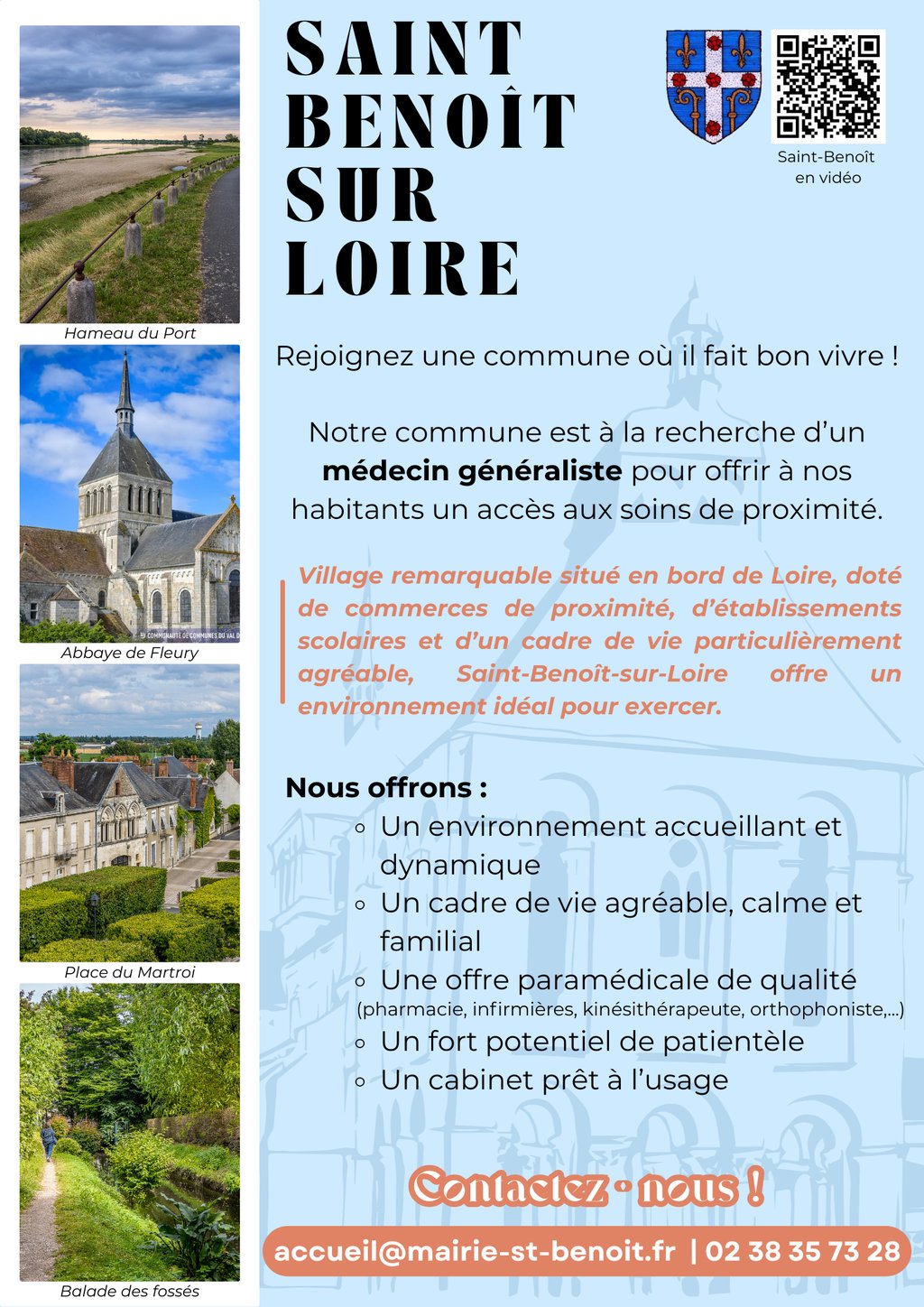 🚨 LA COMMUNE DE SAINT-BENOÎT-SUR-LOIRE RECHERCHE UN MÉDECIN GÉNÉRALISTE !