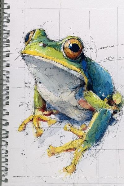 Un dessin en préparatif, un peu d'aquarelle rehaussé par des coups de feutres.